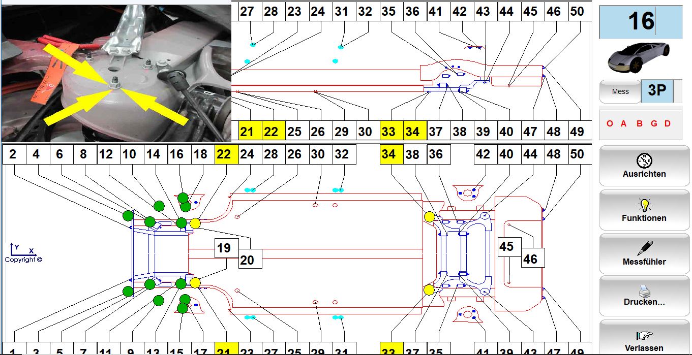 alle Hauptpunkte der Karosserie und der Aufhängung in einer Datenbank verfügbar